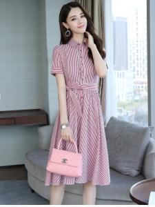ストライプワンピース 膝丈ワンピース フレアスカート 大人ワンピース 大人カジュアル プチプラ 爽やか ウエストマーク