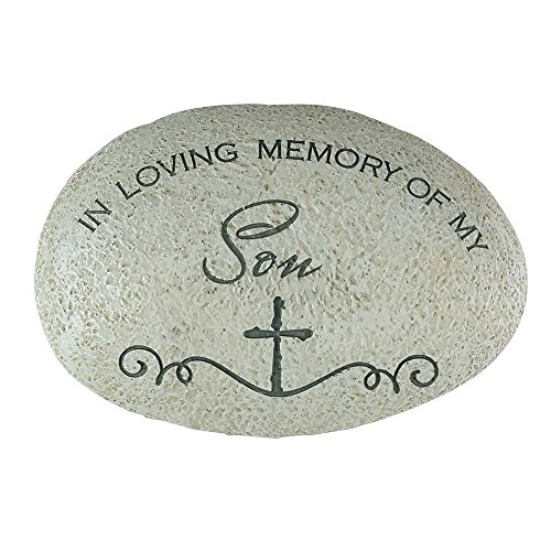 In Loving Memory of My Son Cross Grey 3 x 4.5 Resin Stone Outdoor Garden Remembrance Rock