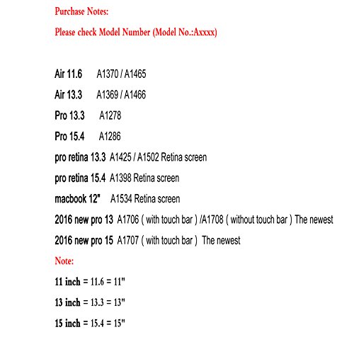 Friendly Note:Please check Model Number (Model No.:Axxxx) of your MacBook on the bottom of your laptop as the IMAGES show. *This case will only fit Model: Model: A1370 and A1465 Case Compatible with: All MacBook Air 11.6" Model: A1370 and A1465( Newest Release 2014/ June 2013 / 2012 / Late 2010) MD711LL/B,MD712LL/B MC505LL/A, MC506LL/A, MC968LL/A, MC969LL/A, MD223LL/A, MD224LL/A New Release 2013 Models: MD711LL/A, MD712LL/A