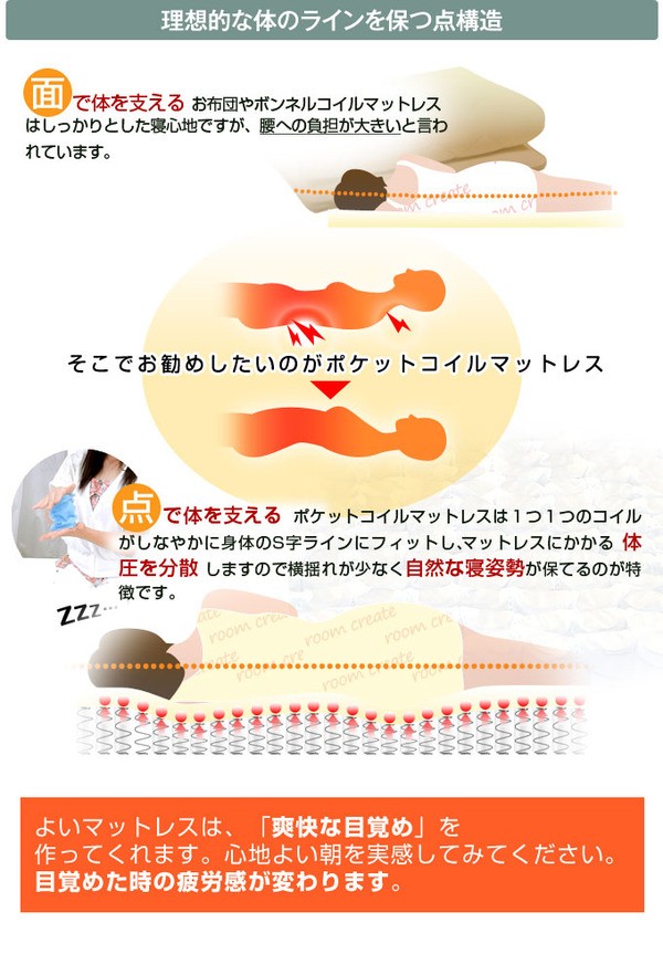 マット厚さ約10cmのポケットコイルマットレス 薄型マットながら3ゾーンのゾーニングとサイドメッシュ機能も充実