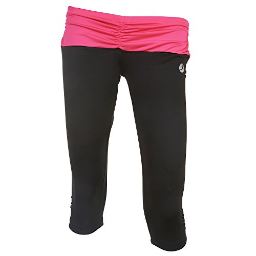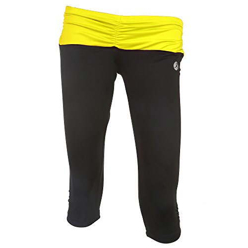 -. Binding : Apparel -. Brand : Necessity -. Department : womens -. Feature : 90% Polyester/ 10% Spandex / Wicks moisture away from the body keeping you cool and comfortable all day. / Created to be cool, breathable and moves prespiration away keeping you comfortable all day / Machine wash easy care no Iron / Ladies Active CaP.R.I Pants -. ProductGroup : Apparel -. ProductTypeName : PANTS -. Title : Necessity Yoga CaP.R.I Black with Fashion Neon Colors