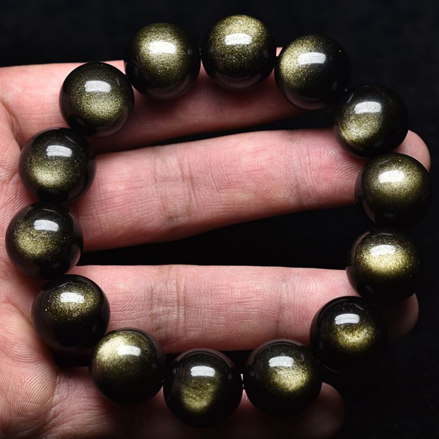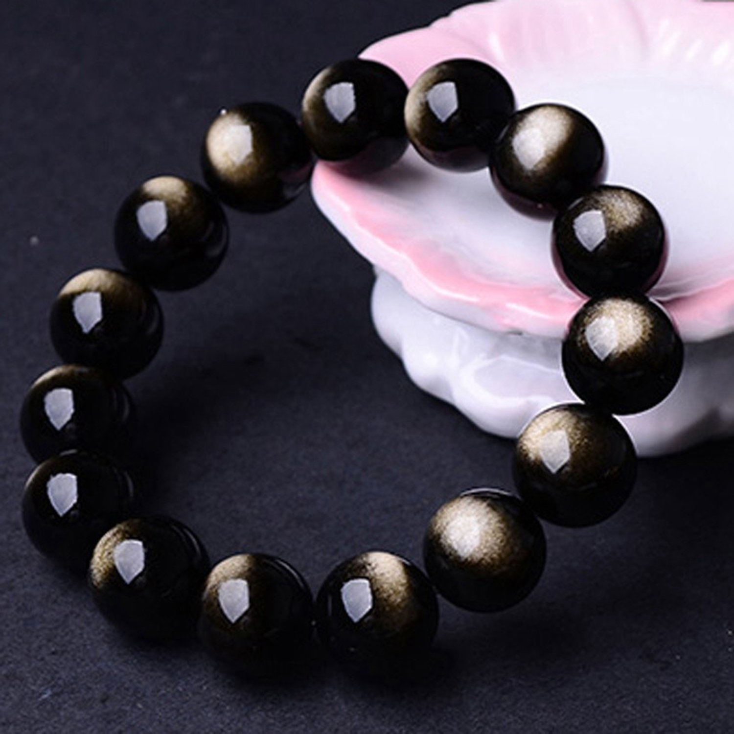 ● This bracelet contains golden golden obsidian, depending on the angle, is called "Friday stone", it is a rare natural stone releasing a mysterious shine that will draw in heart when light hit.