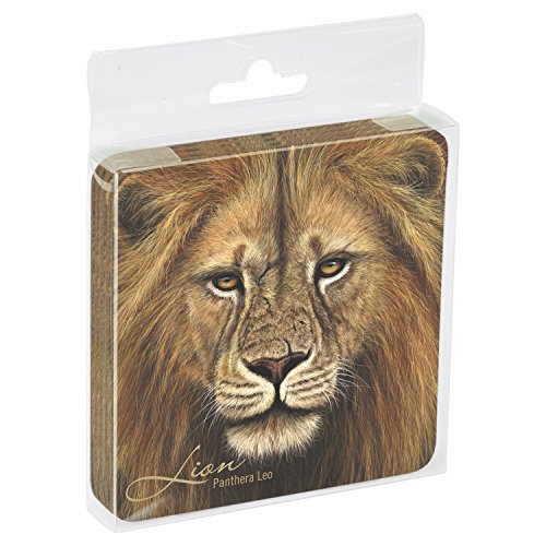 Tree-Free Greetings ECO Coasters Box Set of 4 Drink Coasters, 3.5 x 3.5 Inch, African Lion (EC52713)