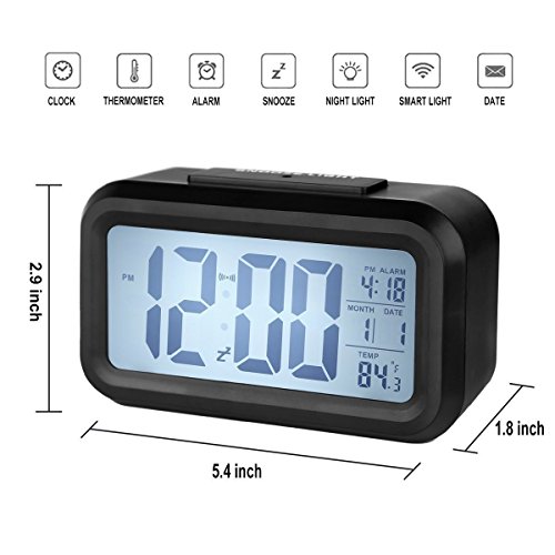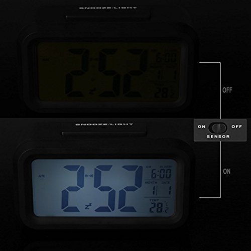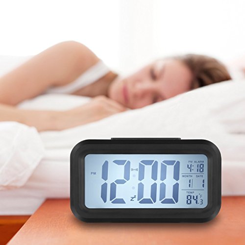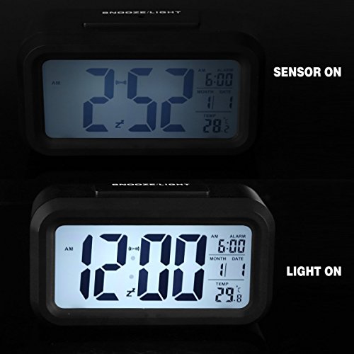 Alarm Clock, Harryup LED Clock Slim Digital Alarm Clock Large Display Travel Alarm Clock with Calendar Battery Operated for Home Office (Temperature Display, Snooze Function, Smart Back-light) (Black)