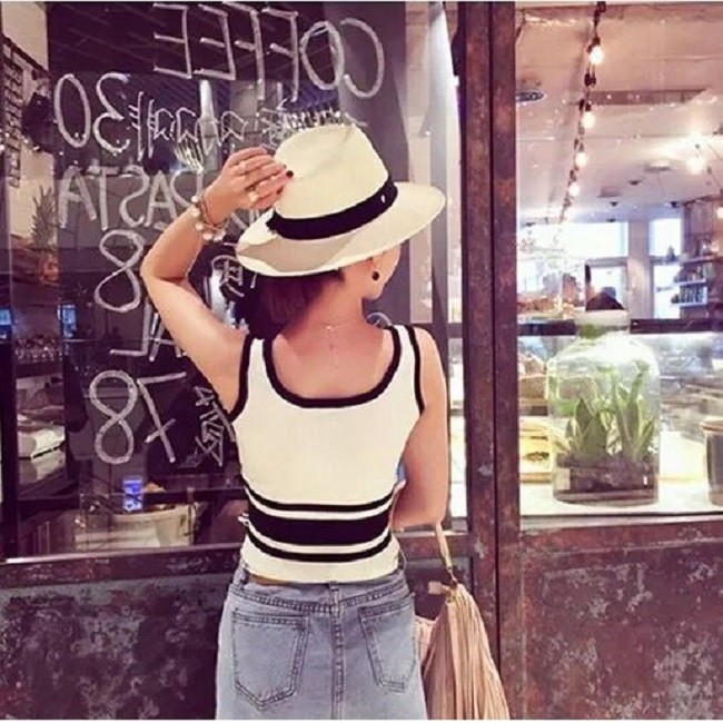 モノトーンが可愛い ミニ丈 タンクトップ
