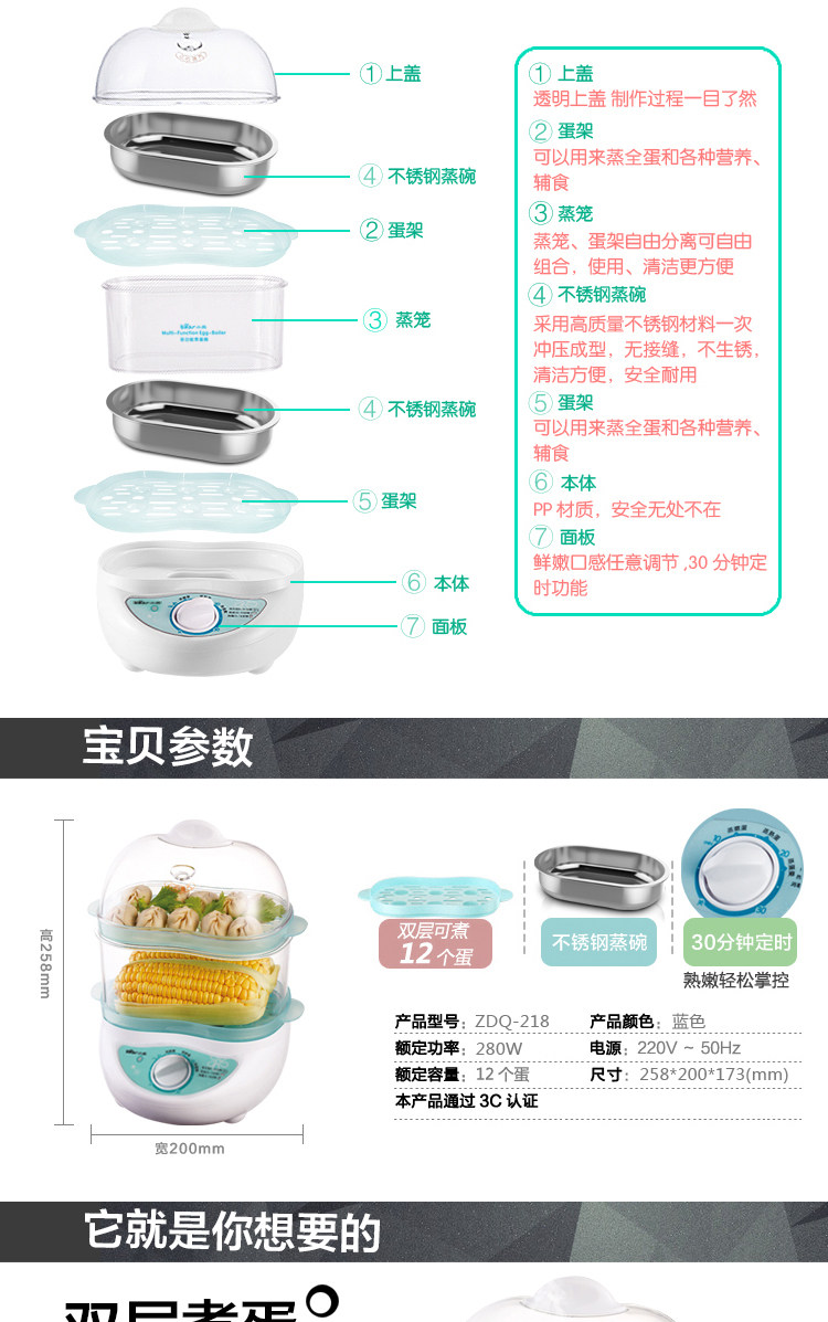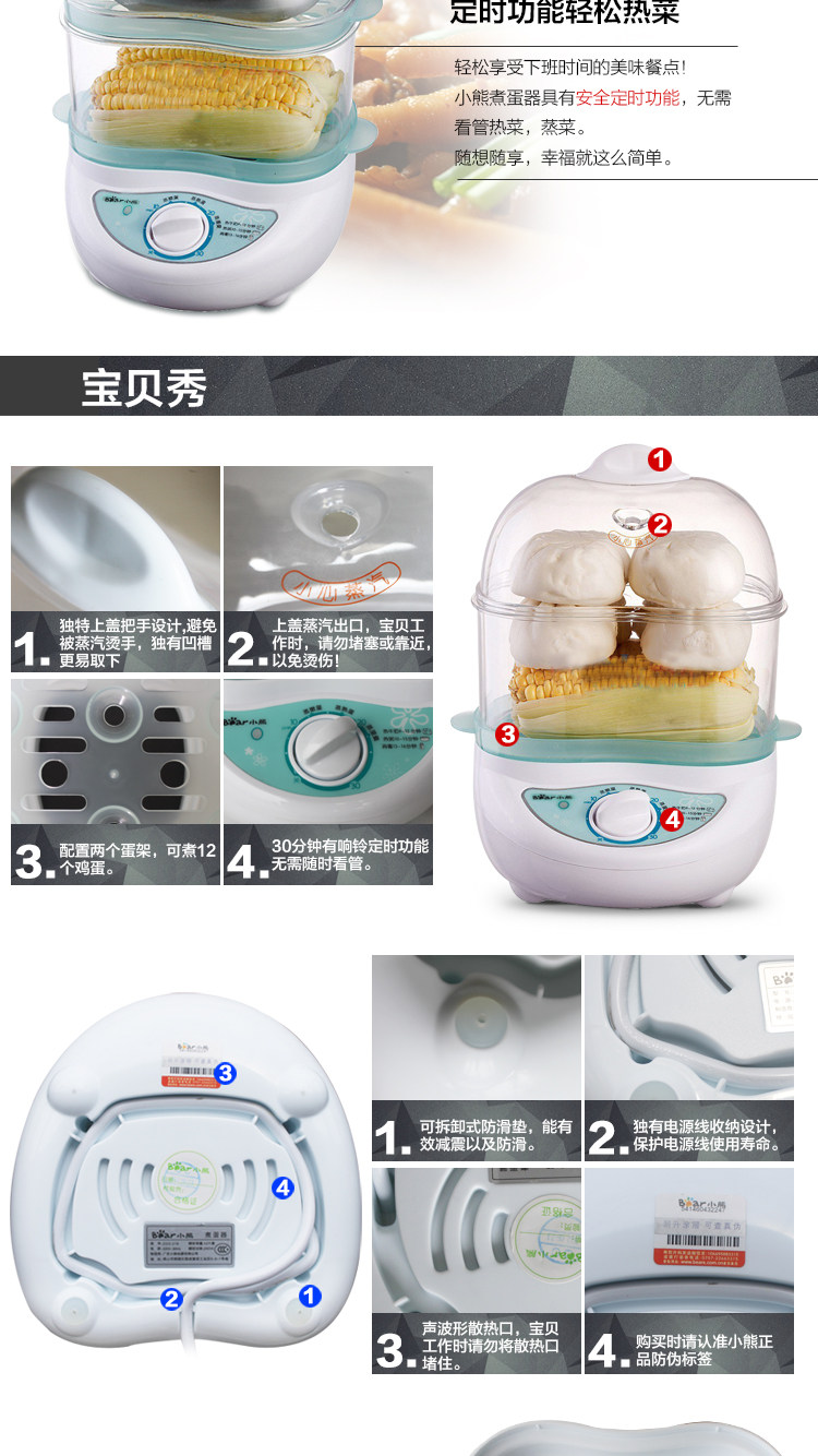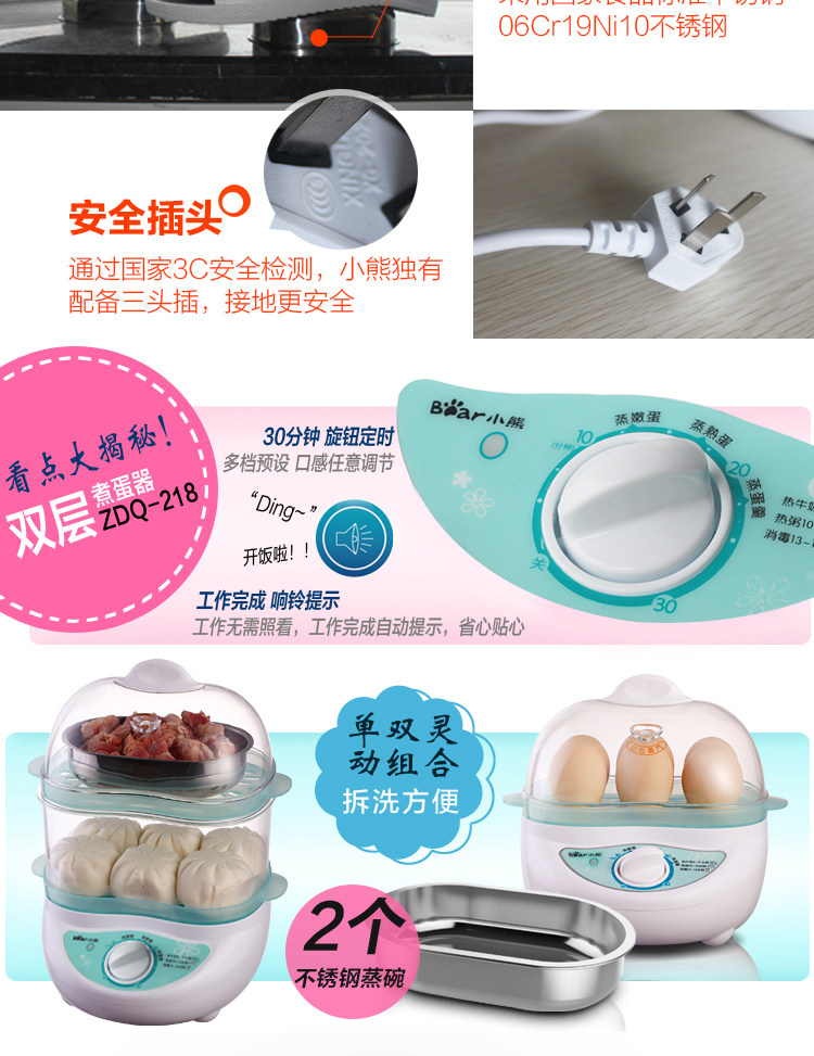 蒸蛋器自动断电小熊煮蛋器全不锈钢双层特价煮蛋机多功能早餐神器