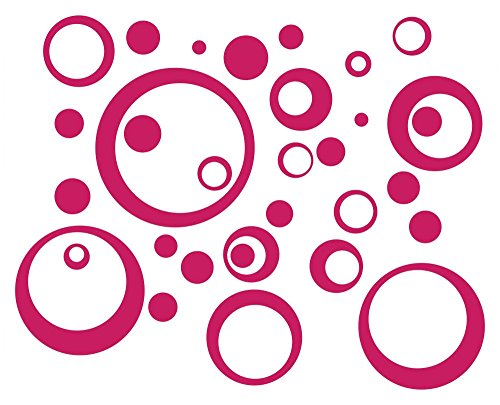 Wall Decor Plus More WDPM090 Wall Vinyl Sticker Decal Circles and Rings, Hot Pink, 25-Piece