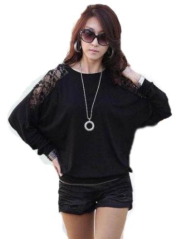 -. Feature : ゆったりとしたドルマンスリーブのトップス / 袖から背中にかけてのレースがセクシーでオシャレです。 / 【カラー】ブラック / 【サイズ 】Lサイズ 着丈65cm バスト120cm~ / 【素材】コットン65% ポリエステル35%