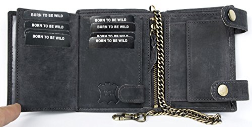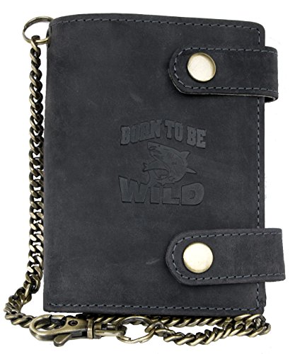 (Born to be Wild)/Accessories/Wallets, Money Key Organizers/DIRECT FROM USA/Men's Grey Genuine Leather Wallet with Metal Chain with Shark