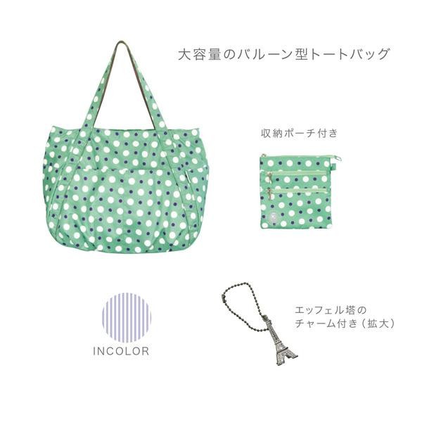 | 肩掛けもできる、大容量のバルーン型のトートバッグ。バッグには内ポケット1つと外側に4つのポケットが付いています。本体のベルトを使えば、キャリーケースへの固定OK。旅行用はもちろん、普段使いにも便利。 |
