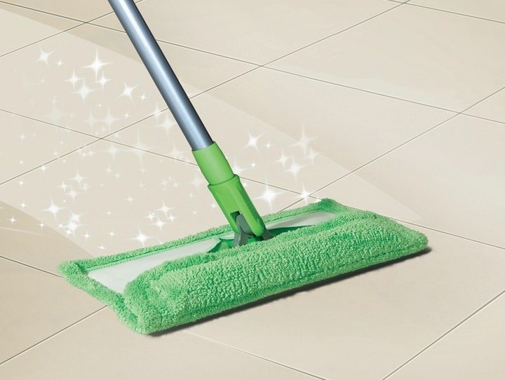 The Super Mop can be used dry as a broom or wet as a mop! The reusable microfiber blend cloth is very effective
