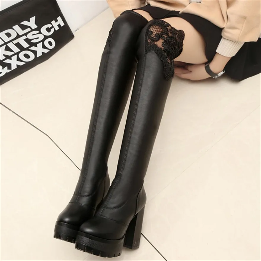 Item :Women Sexy Lace PU Leather Stretch High Platform Over the Knee Boots