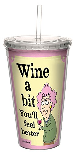 Tree-Free Greetings 16-Ounce Double-Walled Cool Cup with Reusable Straw, Aunty Acid Wine A Bit (CC98485)