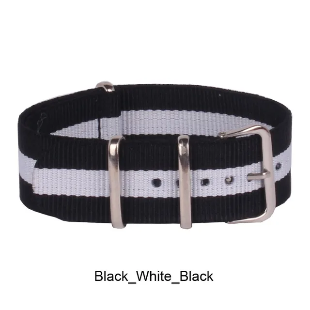 상품 내용 소재:나일론 스트랩, 스테인레스 스틸 버클 밴드 폭:18 미리메터 밴드 길이:260 미리메터 걸쇠 유형:버클 봄 바:포함 색상:Black_White_Black 포장 상세