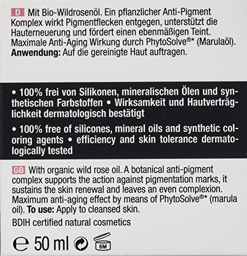 Anti-aging De-pigment Day Care Cream Organic Wild Rose 1.oz CreamA light, soft cream that is quickly absorbed into the skin with light reflecting pigments to give the skin a even, matte appearance. Highly pampering with organic apricot kernel oil, organic sesame oil, macadamia nut oil in addition to the organic wild rose oil & extract. Helps to minimize hyper-pigmented and discolored skin spots with rayolys organic, a blend of peach leaf, raspberry and apple extracts.