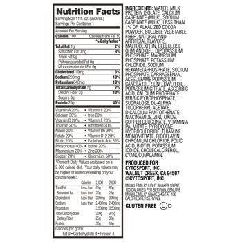 -. Feature : 100 Calories, 20g Protein, 0g Sugar, 1g Fat, Gluten Free, Screw Cap! / Case of 18. Muscle Milk Light Ready-to-Drink Shake, Chocolate, 11-Ounce Cartons / 20 vitamins and minerals! Recyclable Bottle with a Resealable Cap! / Good Expiration Dates! Does not Require Refridgeration! / Suitable for Most Individuals Sensitive to Lactose, Gluten free, Contains No Milk !