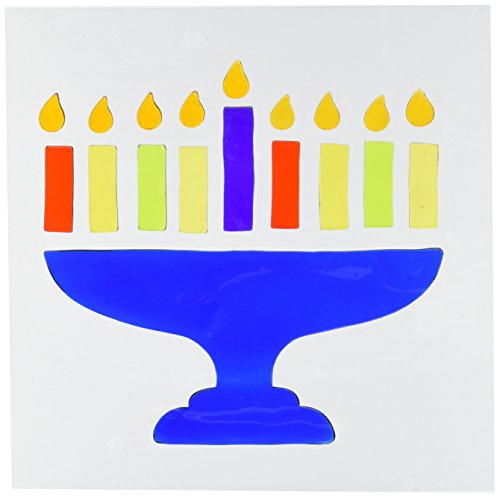 - Multi Colored Gel Stickers in Shape of Hanukkah Menorah to be Placed on Windows.