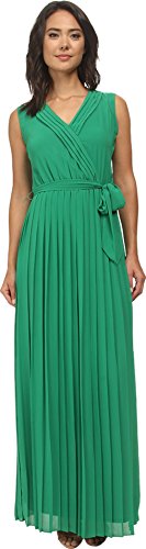 Surplice neckline. Pleated hemline. Fully lined. 100% polyester. Dry clean only. Imported.