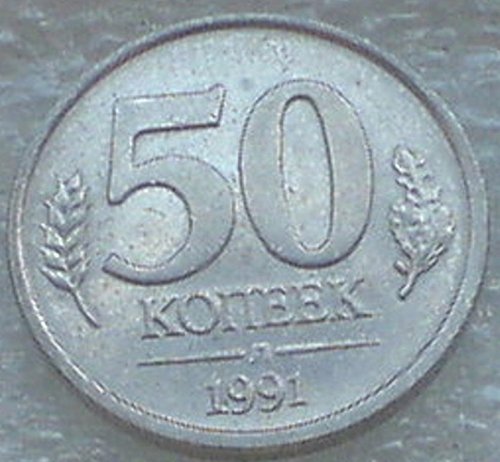 1991 RU 50 Kopeks GKCHP USSR CCCP Soviet Union Russian Coin Kremlin Very Good Details