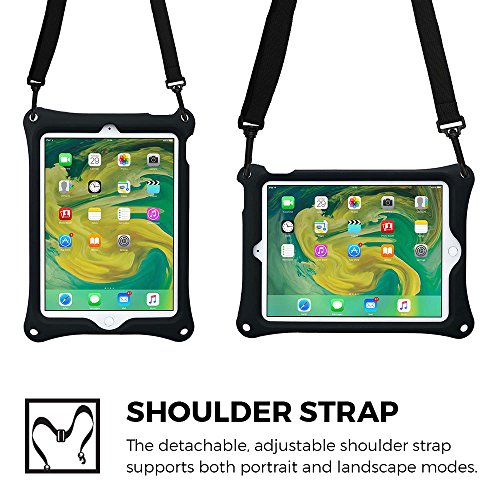 REMOVABLE SHOULDER STRAP & BUILT-IN STAND - comes with adjustable, detachable & expandable shoulder strap. Attach strap to any two holes to carry your device vertically or horizontally like a messenger bag / neck bag / sling / harness or holster. Has adjustable stand / kickstand for hands free protected screen display. You can even strap mount it to car headrest for back seat entertainment!