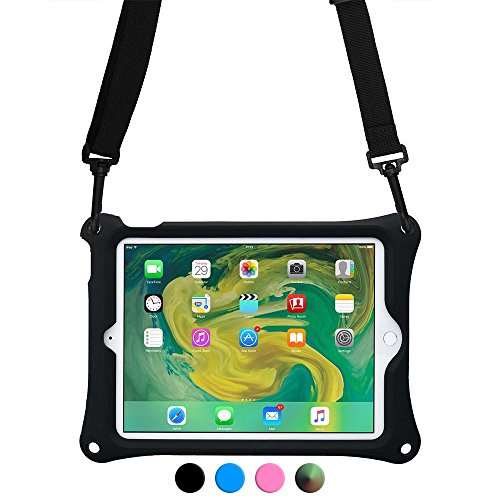 Apple iPad Pro 9.7, iPad Air 2 case, COOPER BOUNCE STRAP Shoulder Strap Heavy Duty Work Rugged Tough Protective Drop Shock Proof Rubber Bumper Silicon Carry Kids Holder Cover Bag with Stand (Black)