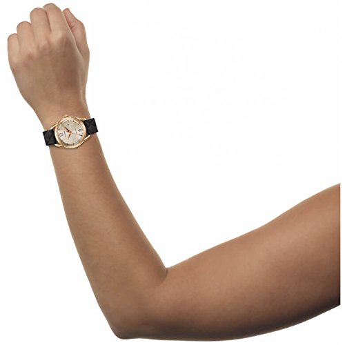 Quilted Leather Band with Stainless Gold Tone Watch Water resistant to 100 feet (30 M) Japanese quartz movement with analog display 34 mm gold tone stainless case w/ mineral dial window