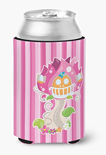 Caroline's Treasures Fairy House Pink Stripes Can or Bottle Hugger, Can Hugger, Multicolor