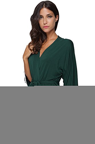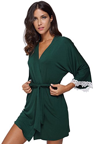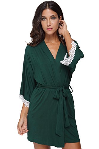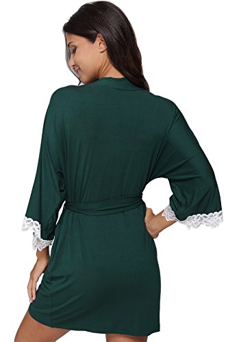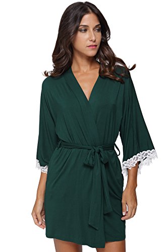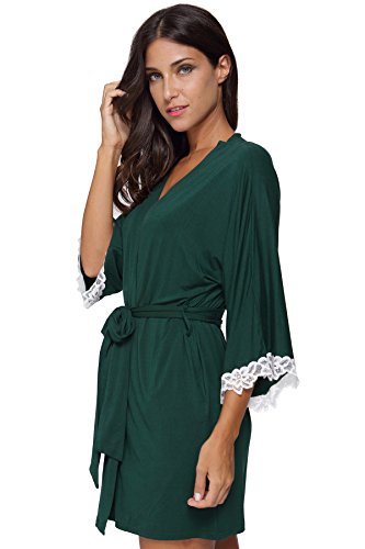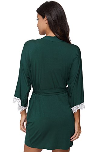 The Bund Women's Short Sleepwear Modal Cotton Knit Robe-Lace Trim, L Dark Green
