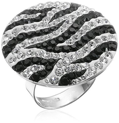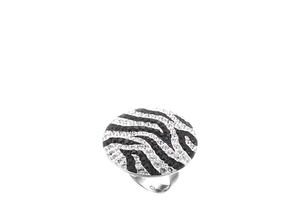Sterling Silver Swarovski Black and White Crystal Zebra Ring, Size 8