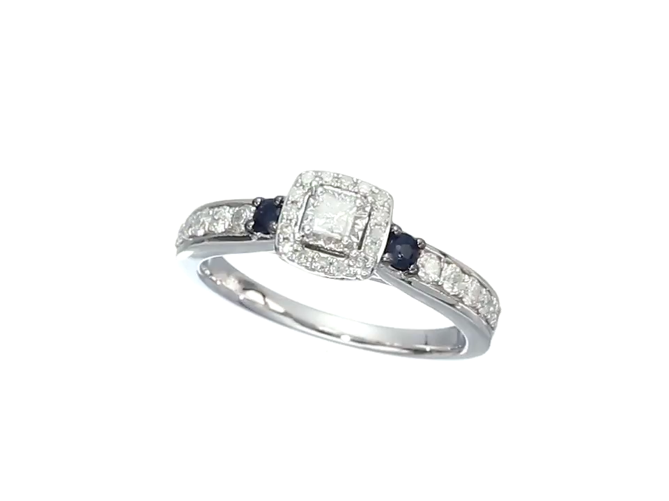 10k White Gold Diamond and Sapphire Ring (3/8cttw, I-J Color, I2-I3 Clarity), Size 7