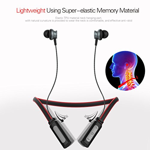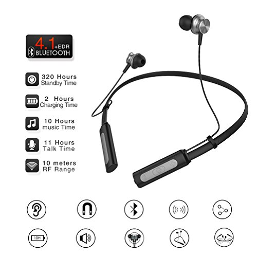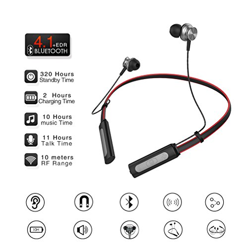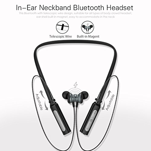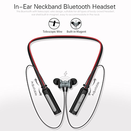 -. Feature : Neckband Design, around the neck wearing style with body-contoured fit. Great for easy carrying and all day comfort. Ensures comfortable fit especially when you are running, cycling, exercising and staying at home or in the Office. / Up to 11 hours of talk time, 10 hours of listening time and 320 hours of standby time keep you connected to your music and social life whenever you need it. Bluetooth Stereo Headset brings you the high-quality audio experience of stereo sound with the convenience of Bluetooth technology. / The Built-in Magnet, attracts the earplugs when you don't need them, greatly decreasing the burden on ears and giving you a convenient storage way to carry around. / Easy Button Control,the button in the side of the headphone which makes it more comfortable and easy for media control and hands-free calling. / We promise that this Bluetooth headphones is valuable. Take advantage of the one year warranty service that can only bring safety and happiness to your.