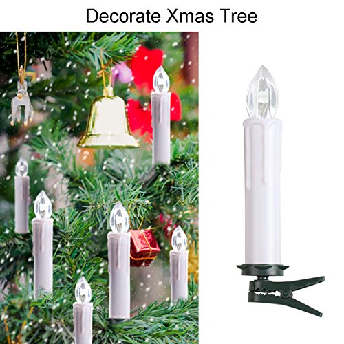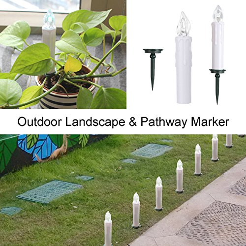 【FOUR MODES USE】Electric taper candles come with spike, clip, foam holder and suction cup. Can be stand on the table, clipped on Xmas tree, plugged into lawn, and sucked on window or flatted wall.
