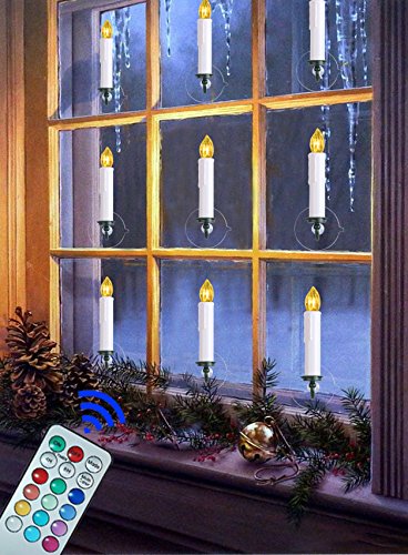Flameless Taper Candles - Remote and Timers - 13 Colors Changing - Battery Operated Flickering LED Electric Candle Lights - Removable Tapers Pillar Candle Holders - Christmas Decorations - 10Pcs