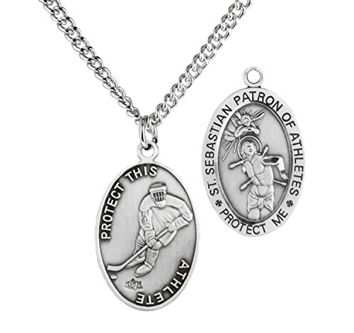 -. Binding : Jewelry -. Brand : Heartland Store -. Department : mens -. Feature : SIZING: 3/4 inch Wide x 1 inch High / QUALITY: Made in USA. This top quality pendant is made from Genuine .925 Sterling Silver / CHAIN INCLUDED: Tarnish Resistant Endless 24 inch stainless steel rhodium plated chain / Pendant back displays an image of a Ice Hockey and the words PROTECT THIS ATHLETE. / Pendant front has an image of St. Sebastian. Raised outer border displays the text ST. SEBASTIAN PROTECT ME. -. Label : Heartland Store -. Manufacturer : Heartland Store -. ProductGroup : Jewelry -. ProductTypeName : FASHIONNECKLACEBRACELETANKLET -. Publisher : Heartland Store -. Studio : Heartland Store -. Title : Heartland Men's Sterling Silver Oval Saint Sebastian Ice Hockey Medal