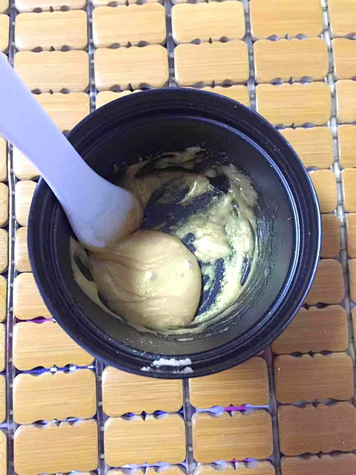 PHASE 2 (mask): Empty the contents of the sachet 1 powder followed by the contents of sachet 2 gel in to the lid of the packaging which serves as a bowl.