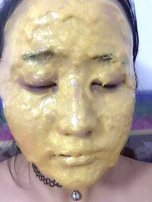 This mask can also be applied over the eyes and on the lips treating areas neglected by other masks.