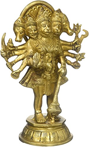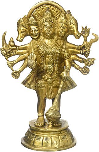 JG Panchmukhi Hanumaan With 5 Face Ape God Brass Vintage Metal Bajrang Bali Rarest