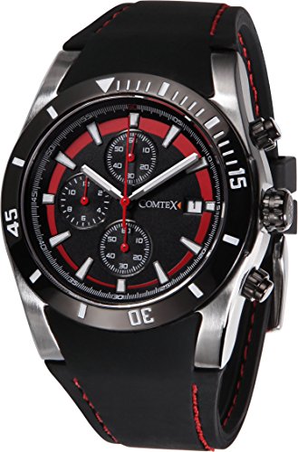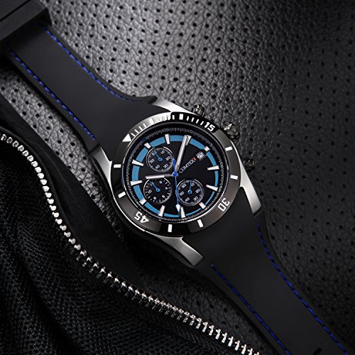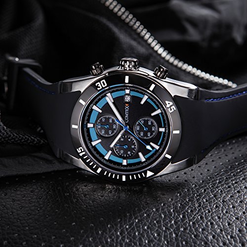Comtex 손목시계 맨즈 청 블랙 실리콘 크로노그래프 날짜 아날로그 쿼츠 워치 시계 10기압 방수