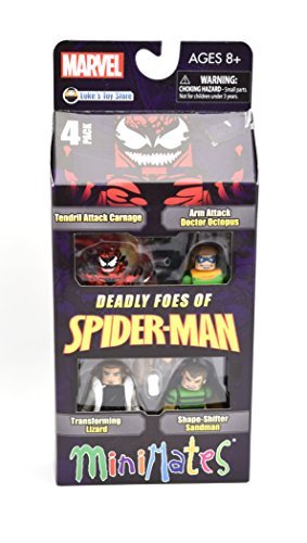 -. Binding : Toy -. Brand : Minimates -. EAN : 0699788179178 -. Feature : By Diamond Select Toys / Art Asylum / Tendril Attack Carnage with Kletus Cassidy Head / Arm Attack Doctor Octopus / Shape Shifter Sandman with extra parts for Flint Marko / Transforming Lizard with extra parts for Curt Connors -. IsAdultProduct : 0 -. Label : Art Asylum -. Manufacturer : Art Asylum -. MPN : Min-9087 -. PackageQuantity : 1 -. PartNumber : Min-9087 -. ProductGroup : Toy -. ProductTypeName : TOYS_AND_GAMES -. Publisher : Art Asylum -. Studio : Art Asylum -. Title : Marvel Minimates Deadly Foes of Spider-Man Box Set -. UPC : 699788179178