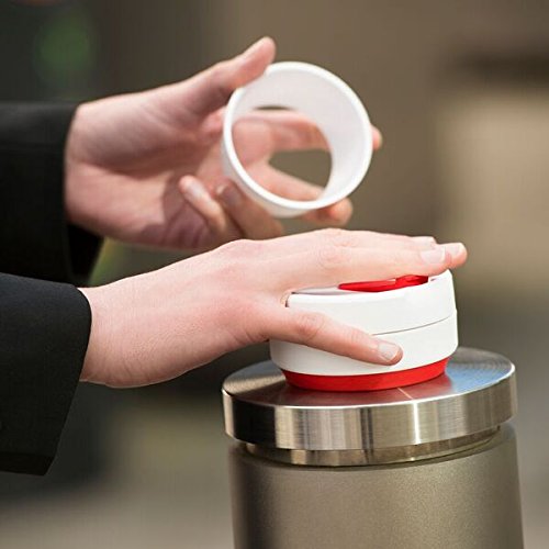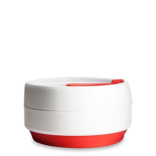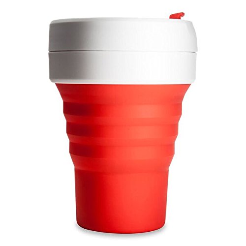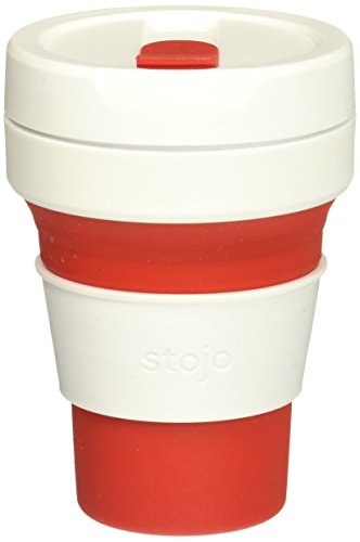 Stojo Collapsible Cup, Silicone, Travel Mug, Reusable, Leak Proof Lid, 12 oz, Red