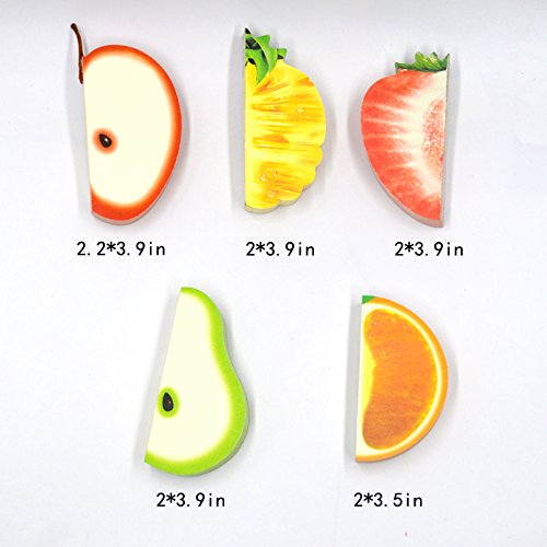 Kennedy Portable Cute 3D Fruit Shape Non-Sticky Note, Apple/Pear/Pineapple/Strawberry/ Orange, Colorful Notepads (10 pad/pack)