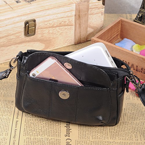 Small Crossbody Bag for Women Vegan Leather Wristlet Wallet Clutch Handbag Smartphone Satchel Purse Black
