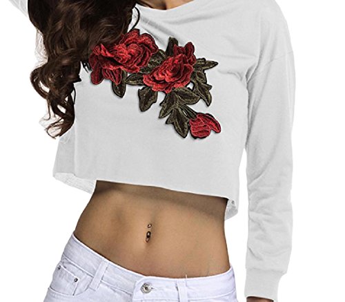 -. Title : Nicellyer Women Round Neck Long-Sleeved Embroidered Tank Top Tees Top