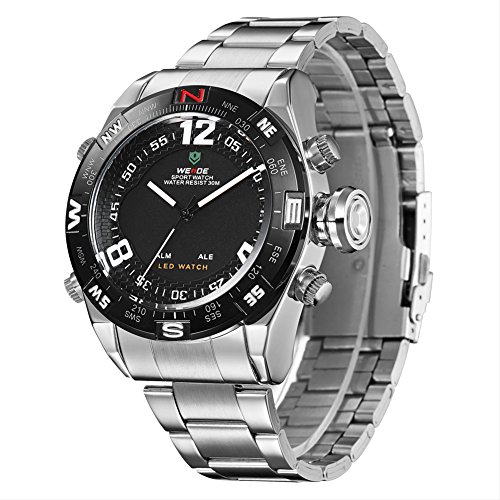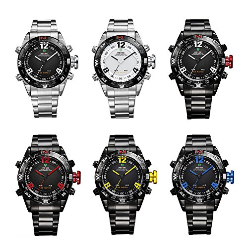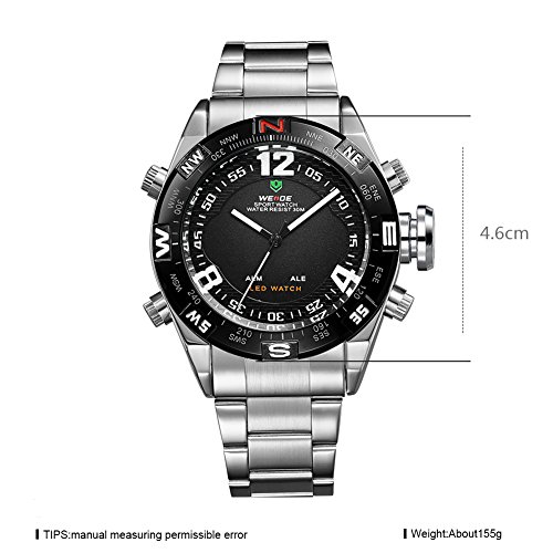 Rockyu 브랜드 인기 손목시계 맨즈 레이디스 스포츠 워치 방수 LED시계 알람 다기능 문자판 셀렉트 사파이어 유리 스테인레스 밴드 [병행수입품]