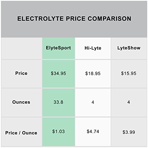 ONE MONTH SUPPLY Each bottle of ElyteSport has 33.8 fl oz. of concentrate, which makes 4 gallons. To dilute, mix 8 oz. in 1 gallon water or milk (3 capfuls per glass). Drink one or more servings before and after workout. Also can be used during times of increased stress, such as during flu or pollen season. Rebalancing electrolytes can help offset over indulgences. Avoid mixing ElyteSport in sugar-based liquids and juices.