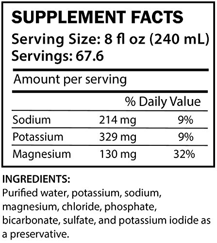 A proprietary blend of purified water, potassium, phosphate, sodium, chloride, magnesium barcarbonate, sulfate, sodium benozate and citric acid as a preservative. The water used in E-Lyte Electrolyte Concentrate is first passed through 2 filters, then through a large Reverse Osmoses filter, then another filter, then ultra violet purifier, then a deionizer, and finally another filter. Additionally, there is another filter, as well as a UV filter, just prior to packaging.