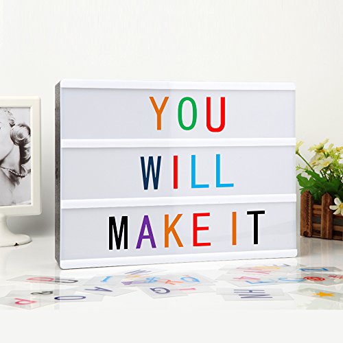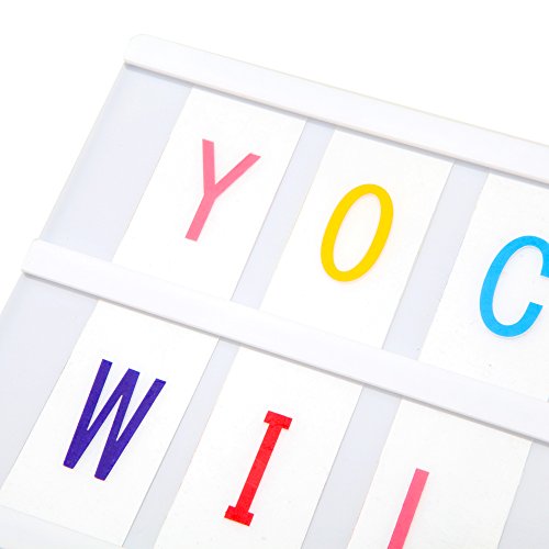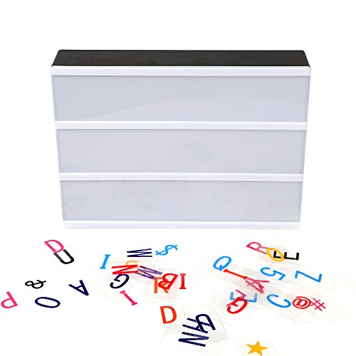 Decorative battery powered LED lightbox with 90 colour letters, numbers and symbols for making your very own fun messages. You can change the messages as often as you like simply by sliding the letters. This light box includes:One free combinatino light box