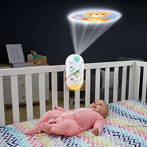A canopy light show as they grow: Younger babies watch the light show on the mobile canopy . Older babies enjoy the show projected on the ceiling overhead
