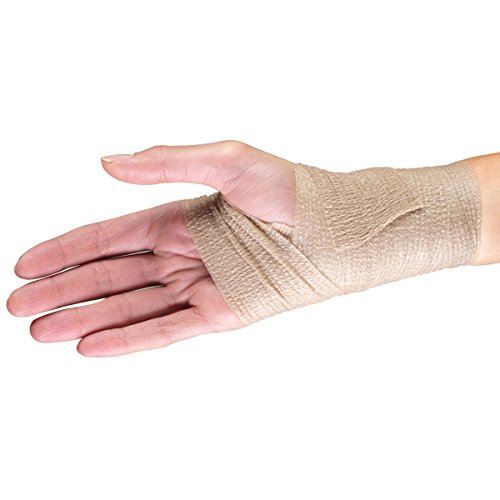 The California Basics bandage is a strong self-adherent tape that offers excellent support. It will not slip, eliminating the need for frequent readjustments. Unlike non-adhesive bandages, self-adherent tape does not require clips and pins to stay in place. Material is water-resistant and will not easily come loose by sweat or water.