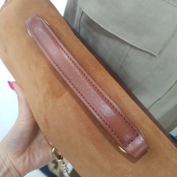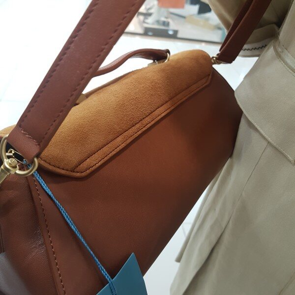 소가죽에 고트가배색이 들어간 스웨이드 백입니다.